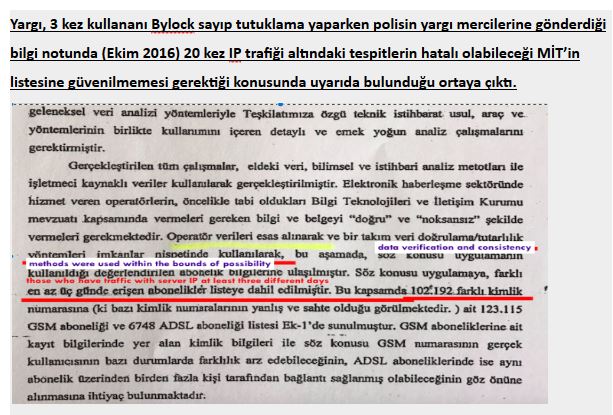 i) MİT’in ByLock verilerindeki hataları gidermek için hassas sorgu ekranı oluşturduğunu, bu sayede çifte doğrulama yapıldığını,