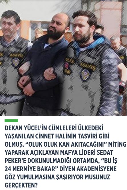 Dekan Prof. Dr. Cemil Yücel, katil zanlısı Bayar’ı şöyle anlatıyor: “Akli dengesi yerinde değil, pek çok kişiyi şikayet eden ve korkulan bir insandı.” Bayar’ın öldürmek istediği kişilerden biri olan Dekan Yücel’in cümleleri ülkedeki yaşanılan cinnet halinin tasviri gibi olmuş. “Oluk oluk kan akıtacağını” miting yaparak açıklayan mafya lideri Sedat Peker’e dokunulmadığı ortamda, “Bu iş 24 mermiye bakar” diyen akademisyene göz yumulmasına şaşırıyor musunuz gerçekten? 110 binden fazla kayıp silahın bulunduğu bir memlekette adam üşenmemiş ruhsat almış, daha ne istiyorsunuz! Siz istediğiniz kadar ‘deli’ deyin; adamın akıllı olduğuna dair elinde raporu var. Ahlaki zaaflarından filan bahis açmayın, erdemli birey yetiştirme konusun uzman var karşınızda… Aynı makaleyi Eğitim Sen’in dergisinde yazsa işini kaybederdi. Aktifsen’in dergisinde yazsa üstüne en az 10 yıl hapis yerdi.