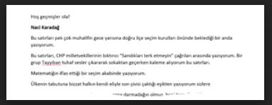 Yazı şöyle bitiyordu;