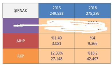 HDP yanlış yazıldığı için çizdim, zaten esas meselemiz MHP. Şırnak’ta 6 bin 500 yeni seçmeni var MHP’nin ve artırılan oy yüzdesi % 203