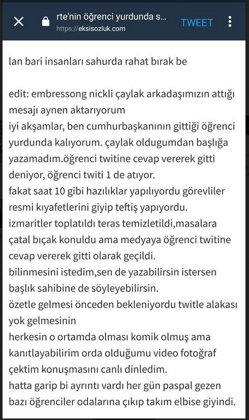 “Gece yarısı ani gelişme deniyor ama akşamdan sonra yurt temizlendi, görevlilere yeni kostüm verildi, menü ona göre değiştirildi…”