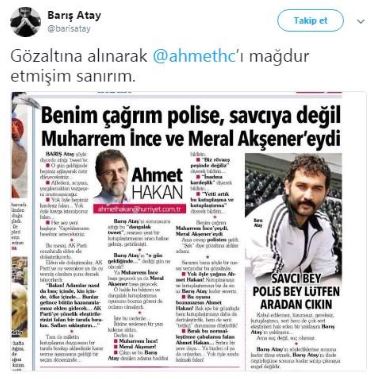 Ahmet Hakan oyuncu Barış Atay’ı düpedüz gammazlamıştı yazısında.