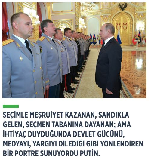 Onca eleştiriye rağmen Putin’in başarısı, bazı yarı demokratik ülkelerdeki parti liderlerine ilham kaynağı oldu. Seçimle meşruiyet kazanan, sandıkla gelen, seçmen tabanına dayanan ama ihtiyaç duyduğunda devlet gücünü, medyayı, yargıyı dilediği gibi yönlendiren bir prototip üretmişti Putin. Bu tavrın Rus halkında bir karşılığı olsa gerek ki destek de görüyordu.