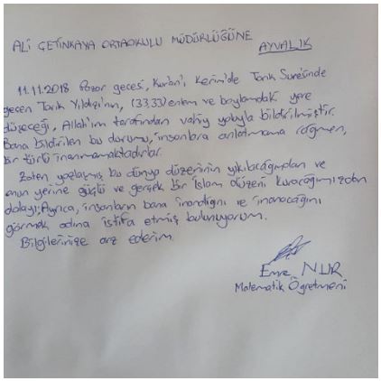 Açıkçası bugüne kadar pek milyonlarca öğretmen, milyonlarca gerekçe ile mesleğinden istifa etmişti ama hiç kimse kıyamet kopacak gerekçesiyle işletmemişti istifa müessesesini.