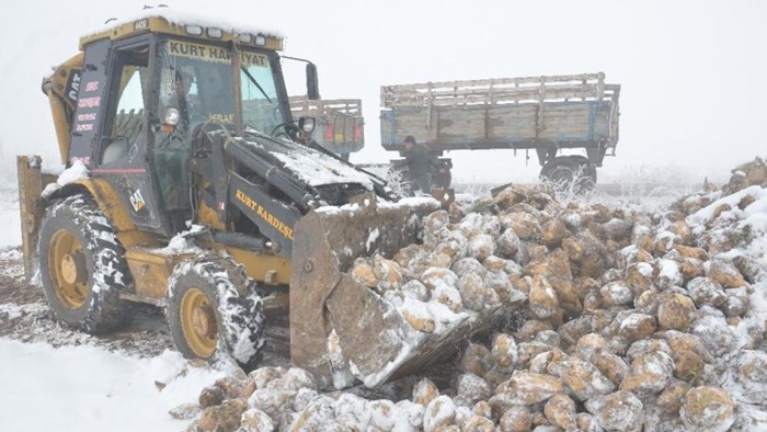 Üreticilerin tek sorunu fabrikalarda muhatap bulamaması da değil. Fabrikaların işi yavaştan alması, çiftçinin de hasadı ertelemesine neden oldu. Kar yağışının başlamasıyla da onbinlerce ton şeker pancarı karın altında kaldı. Sadece Elbistan Ovası’nda 100 bin ton pancarın kar altında kaldığı belirtiliyor. Muşlu çiftçiler de aynı sorunla karşı karşıya. Tarlada karların altında kalan pancar makinelerle sökülemeyecek. Hasad eksi 8-10 derece soğukta elle yapılacak.