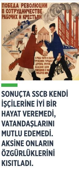 Sonuçta SSCB kendi işçilerine iyi bir hayat veremedi, vatandaşlarını mutlu edemedi. Aksine onların özgürlüklerini kısıtladı. Güya halkları kapitalizmin kıskacından kurtardı ama onları oligarşik, dar bir grubun kölesi haline getirdi. Günün sonunda kapitalist ülkeler tedbir alarak yaşanabilir bir sistem kurdular. Sosyal devlet uygulamlarına geçtiler ve vatandaşının refahını yükseltti, hayat şartlarını iyileştirdiler. Kapitalist devletler tehditlerden ve tehlikelerden ders alarak, müsademe-i efkardan çıkarımlarda bulunarak kendini yeniledi, güncelledi, düzeltti. “Eşitlik vereceğim” diyerek vatandaşını ezen, birey olmaktan çıkarıp sürüler haline getiren, komünist parti denilen otoriter bir yapıyla ülkeyi idare eden SSCB hayatın gerçeklerine, insani taleplere dayanamayıp çöktü. Komünizm rüyası hüsranla bitti. Ama ders alan, yenilenen kapitalizm farklı bir formla yoluna devam ediyor.