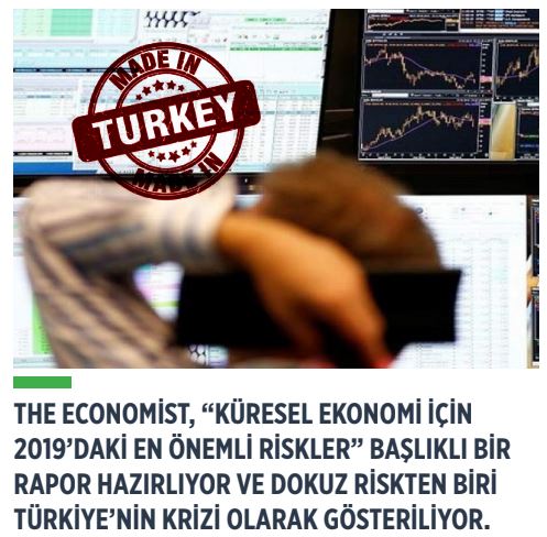 The Economist, “Küresel ekonomi için 2019’daki en önemli riskler” başlıklı bir rapor hazırlıyor ve dokuz riskten biri Türkiye’nin krizi olarak gösteriliyor.